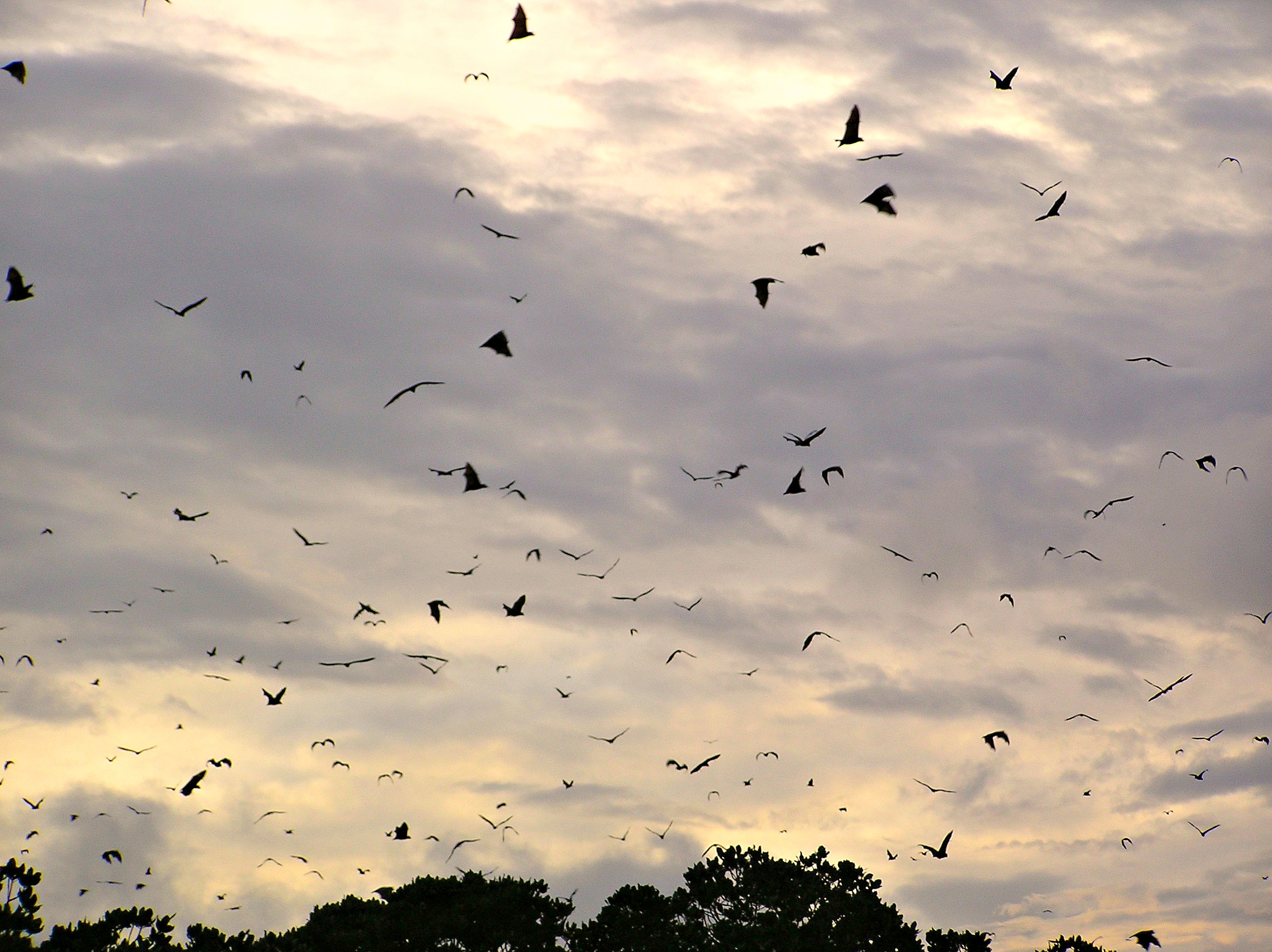The sheer size and number of them darkened the sky and got me calculating the angle I would need to throw myself to make it under the seat in front of me if one decided to drop in for a little bite of my blood. Sensing my distress, our captain assured us that these were fruit bats, not to worry — I still kept my collar up. It was fascinating to watch these awkward fliers and their huge wing span.
