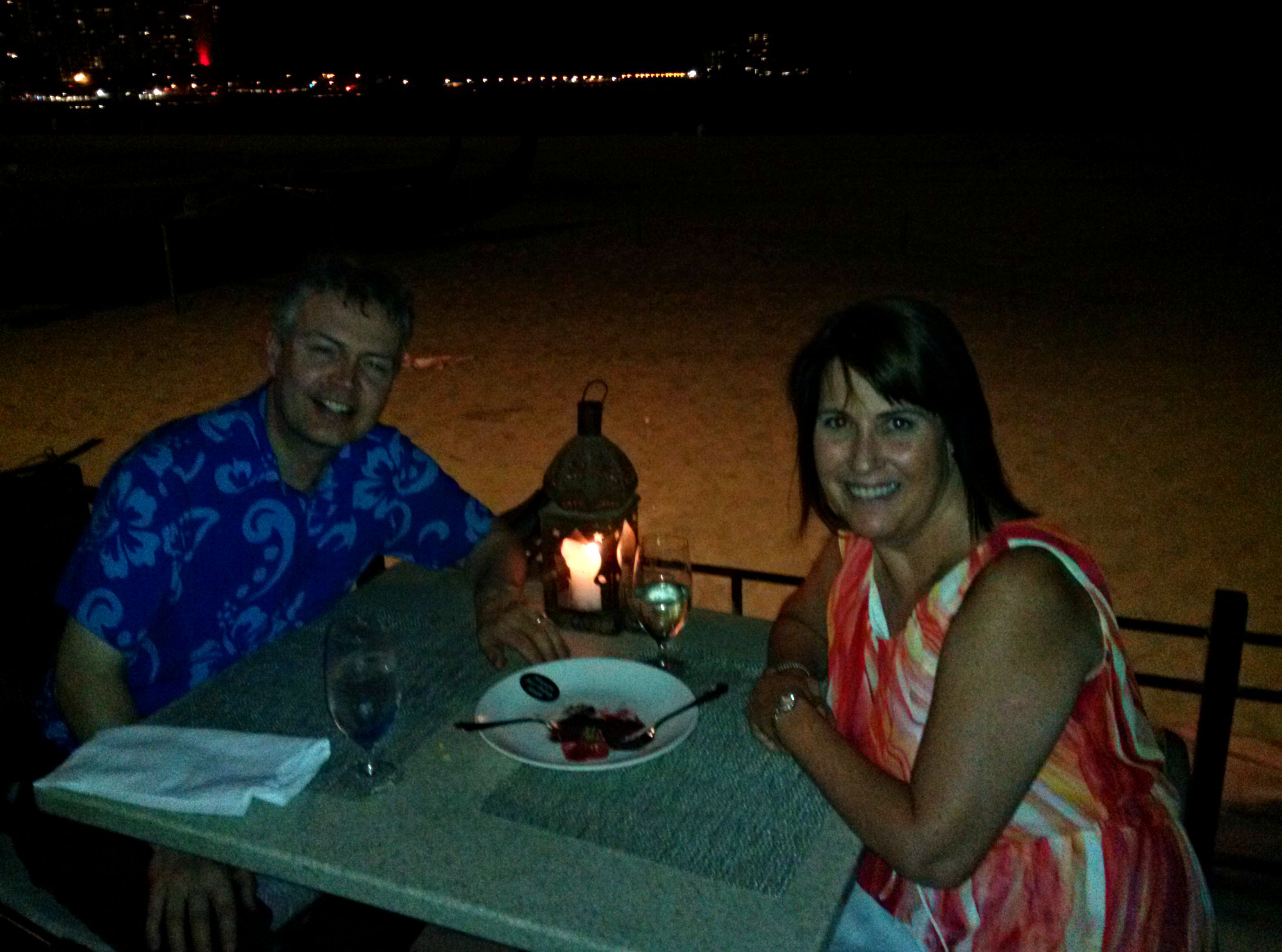 We had reservations at the Royal Hawaiian’s Azure Restaurant and stopped at their famous Mai Tai Bar prior for a sunset drink and celebration kick-off. We settled into our seats (perfect view of the ocean and the neighboring luau) and ordered the house drinks. I was high on life and love. Unbeknownst to me, my love had not eaten anything since lunch — many hours earlier.