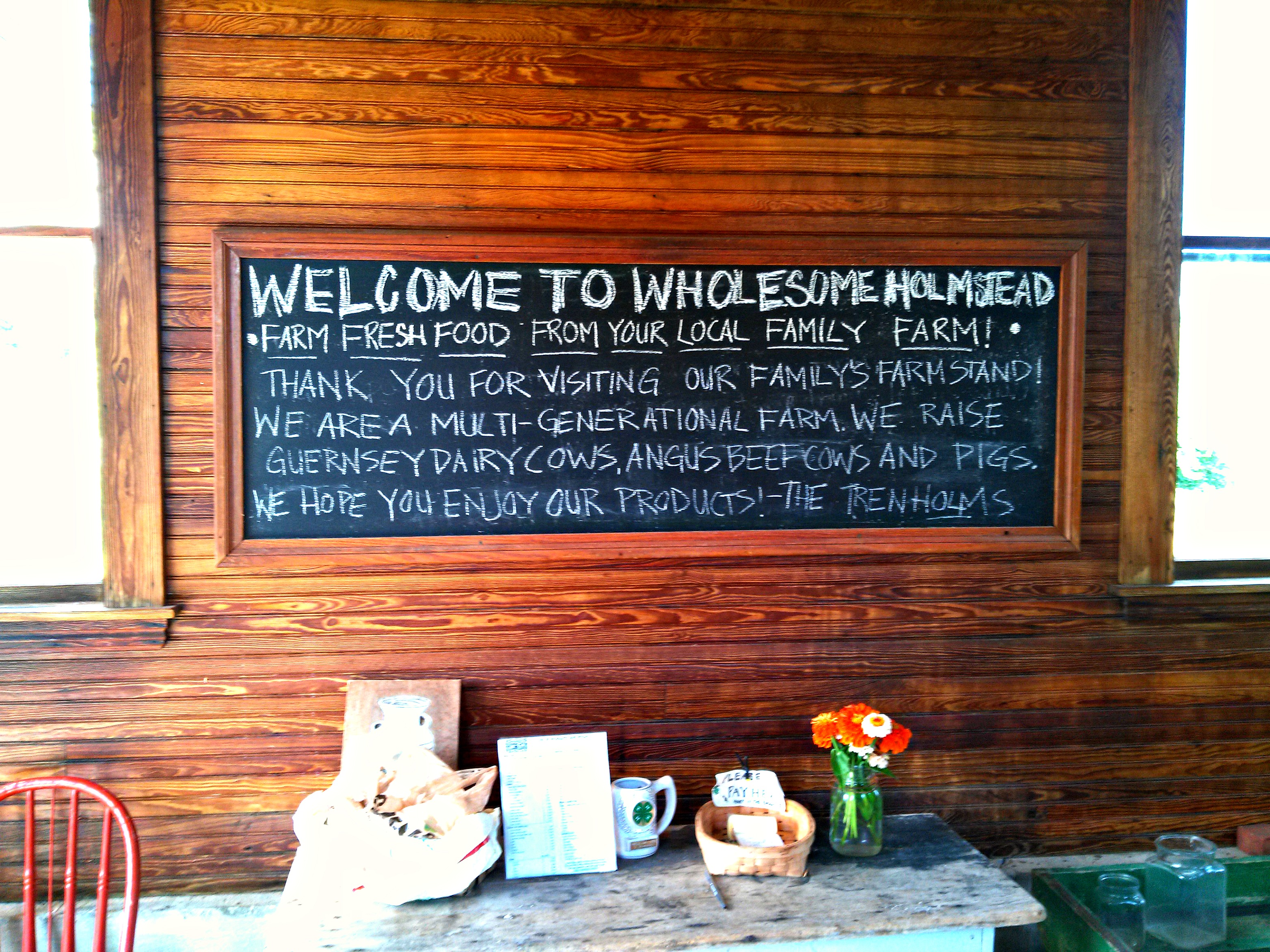 This is a little road side shed where you can get milk and a few refrigerated things, just be sure to sign your name and leave the proper amount of money in the basket.