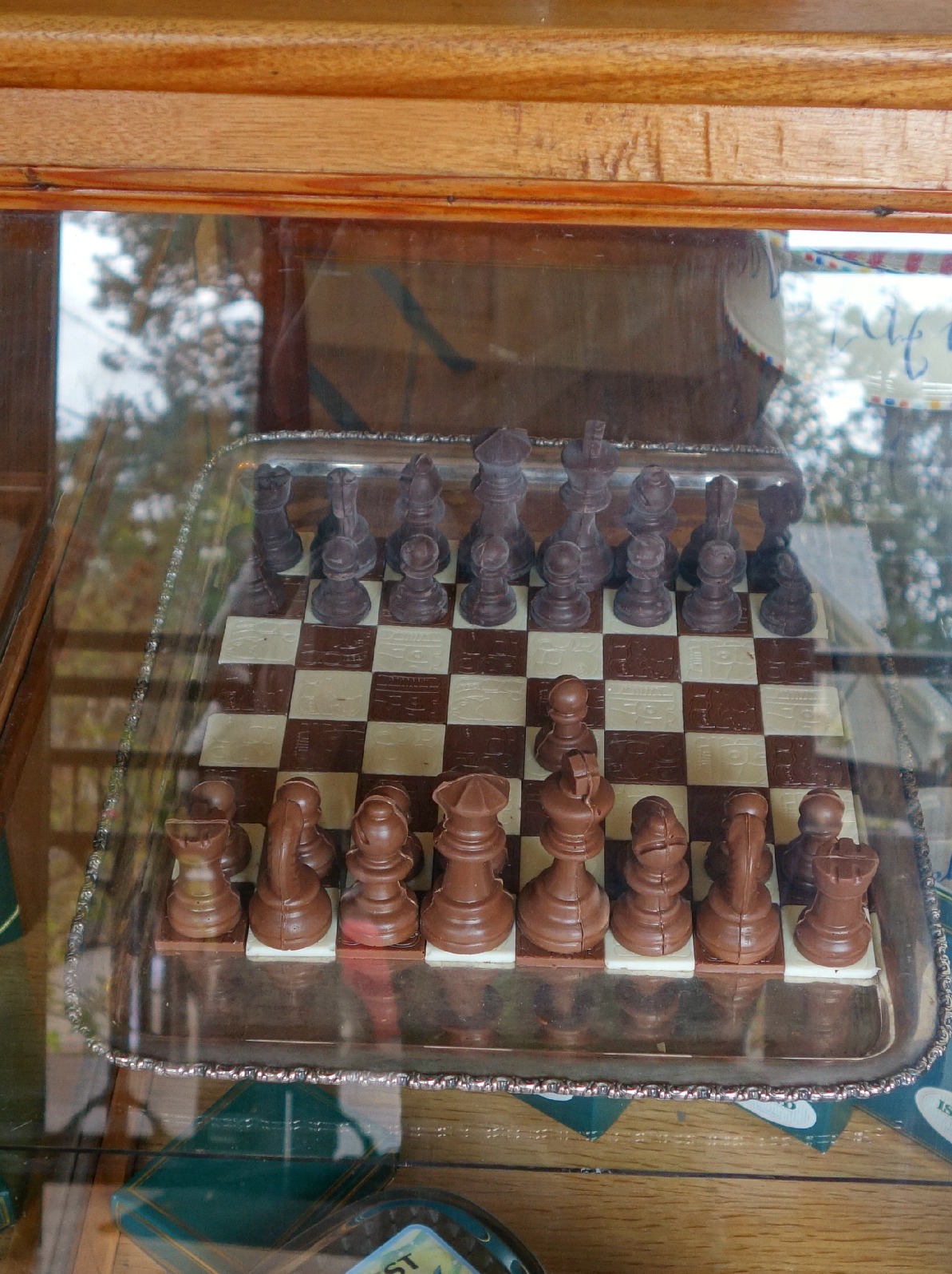 Locked tightly under glass inside the store sits the chocolate chess set and board. Its intricate designs and rich chocolatey anticipation all add to the excitement.